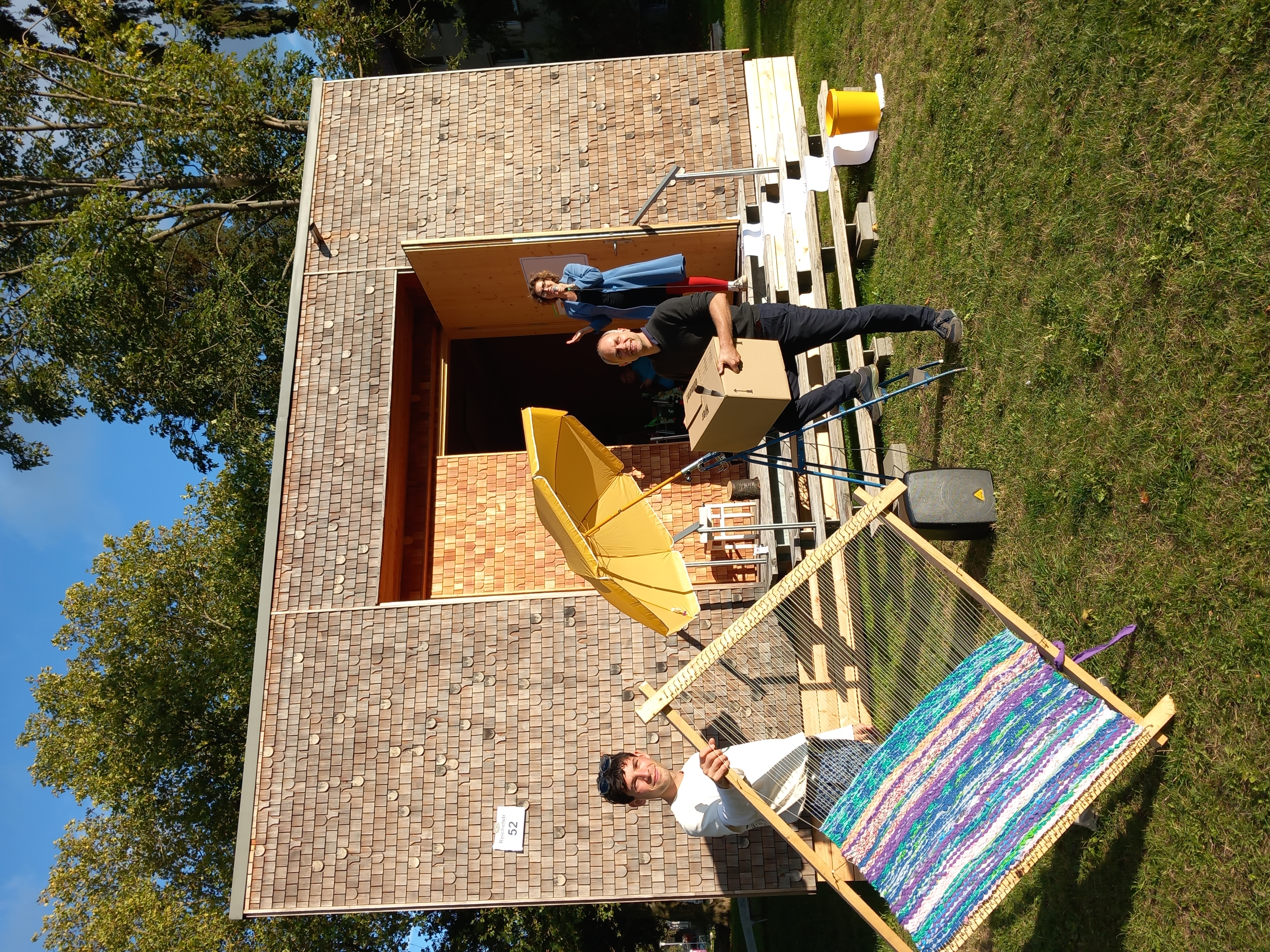 Auf dem Gelände der Volks-Bau- und Sparverein Frankfurt am Main eG wurde eifrig gearbeitet: Zuerst entstanden die Fundamente und die Gräben für die Anschlüsse. Im September war es dann so weit – die vorgefertigten Holzelemente wurden zusammengesetzt, und Stück für Stück wuchs das mobile Atelier heran. Nachdem Boden, Wände und Decke standen, begann der Innenausbau – der letzte Schritt, bevor das Künstler:innenzimmer seine Türen öffnete.