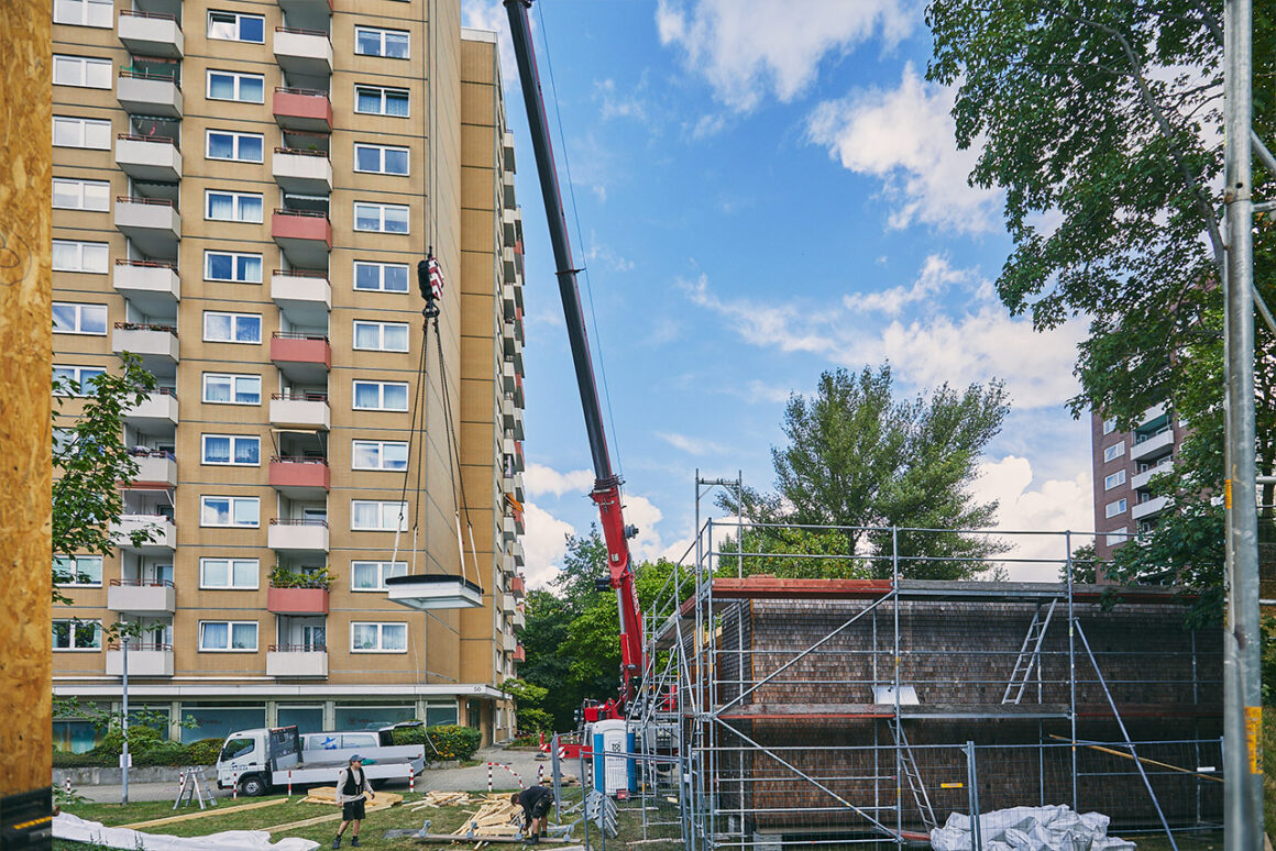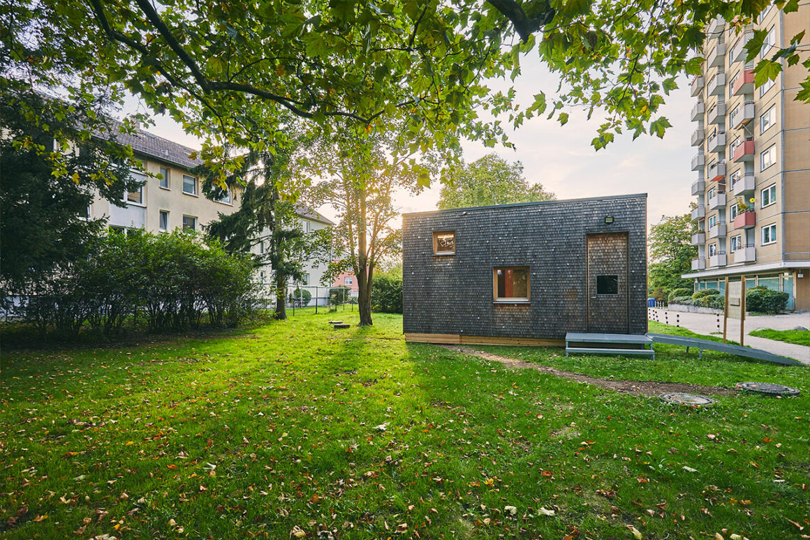 In einem dieser Quartiersräume, genau zwischen den drei Hochhäusern in der Siedlung Reichelstraße, nur einen Steinwurf von der Endhaltestelle Ginnheim (U1) entfernt und nahe der Ginnheimer Landstraße, wird das fliegende Künstler:innenzimmer Ginnheim stehen. Hier soll es die Bewohner:innen aktivieren und animieren, sich an einer verbesserten Gestaltung ihres Wohnumfeldes und ihres Stadtteiles zu beteiligen.