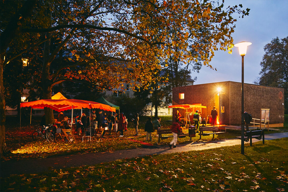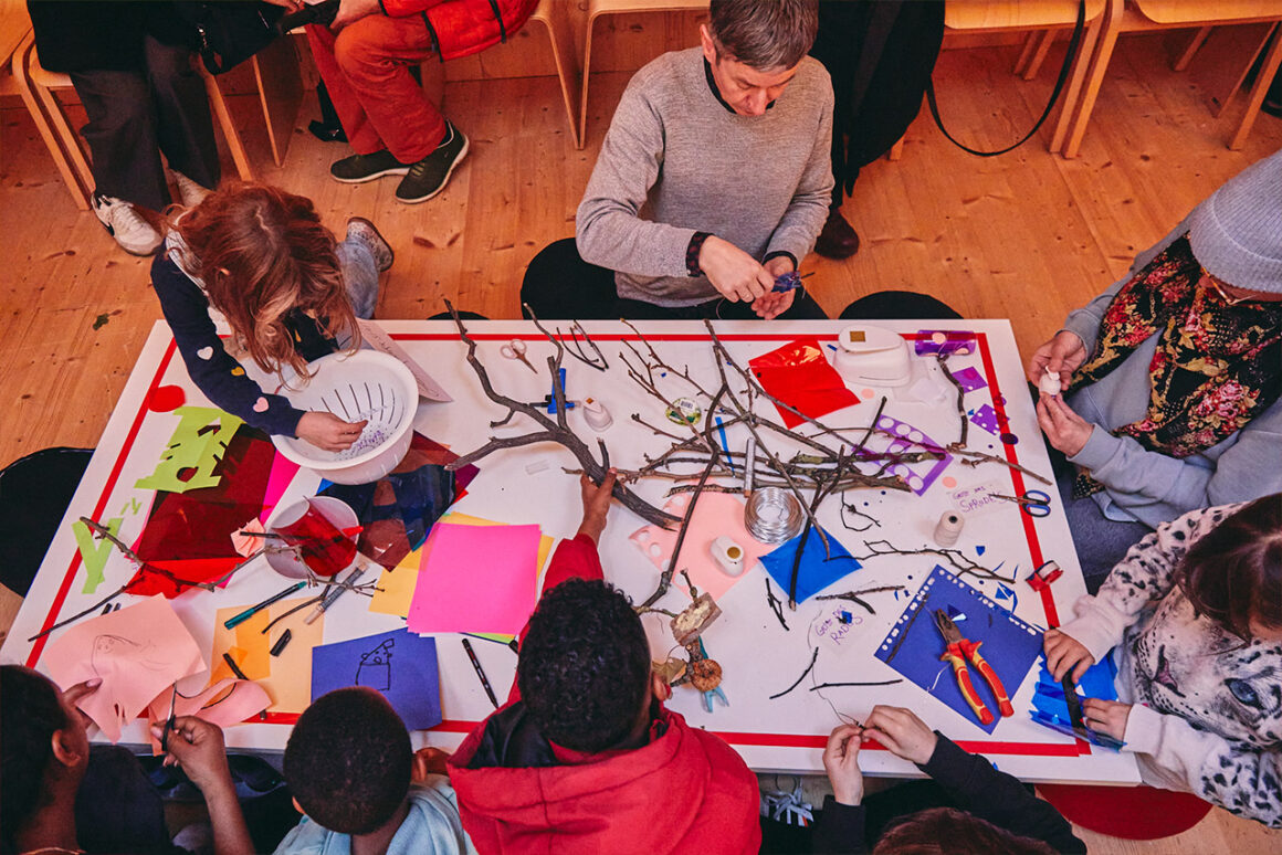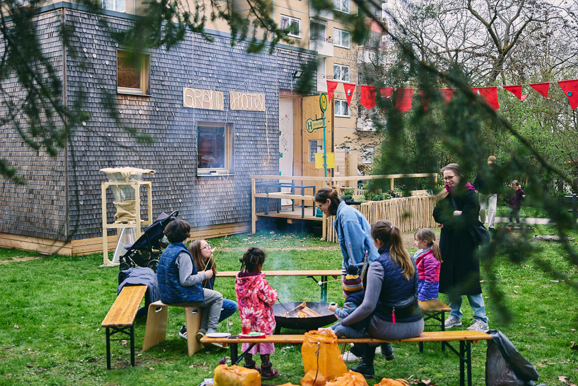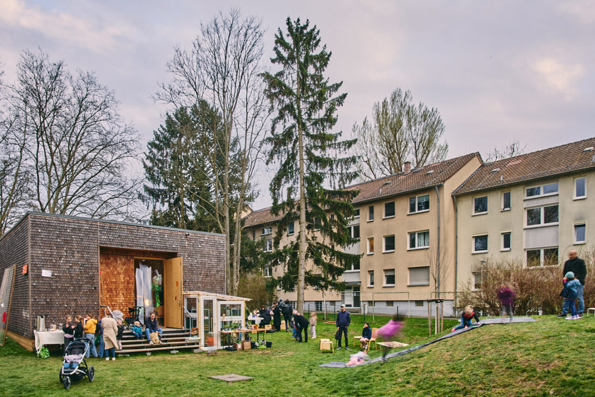 Im Programm „Das fliegende Künster:innenzimmer im Quartier“ fungiert der Bau als reines Künstler:innen-Atelier sowie als Arbeits-, Lern- und Kreativort für alle Beteiligten. Als Begegnungsort für den Stadtteil werden dort an durchschnittlich drei Tagen pro Woche Angebote für das Quartier und Kooperationen mit lokalen Einrichtungen sowie offene Atelierzeiten von den dort ansässigen Künstler:innen angeboten. An den übrigen Wochentagen steht das FlieKü im Quartier dem Quartiersmanagement und weiteren Akteur:innen im Stadtteil zur Verfügung.