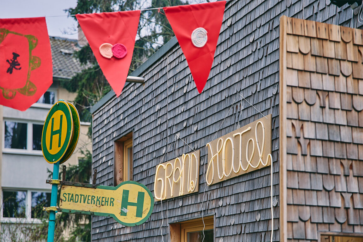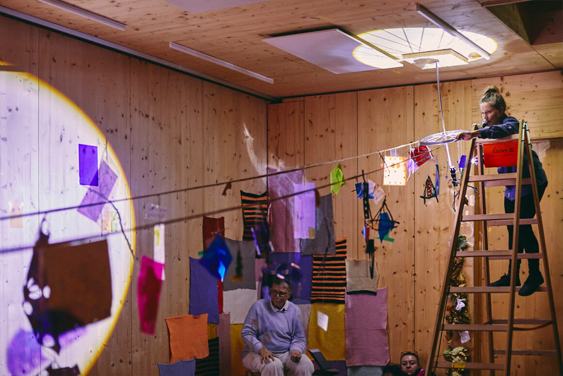Eine Besonderheit des Programms „Das fliegende Künstler:innenzimmer“ ist, dass es einen eigenen Raum „mitbringt“. Dieser ist ursprünglich so konzipiert worden, dass er von den Künstler:innen im Programm „Das fliegende Künstler:innenzimmer an Schulen“ gleichzeitig als Wohn-und Atelierraum genutzt werden kann.